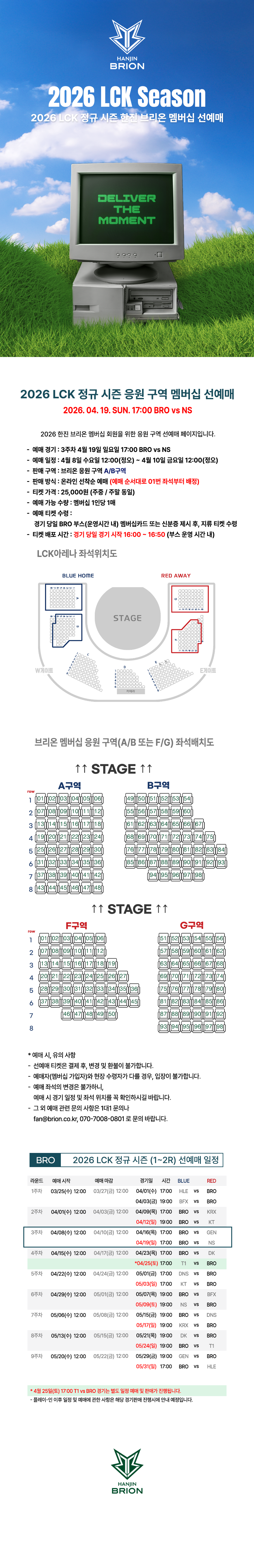 * 선예매 종료 후, 응원 구역 잔여 좌석은 NOL티켓 LCK 예매처에서 판매됩니다. 참고 바랍니다.